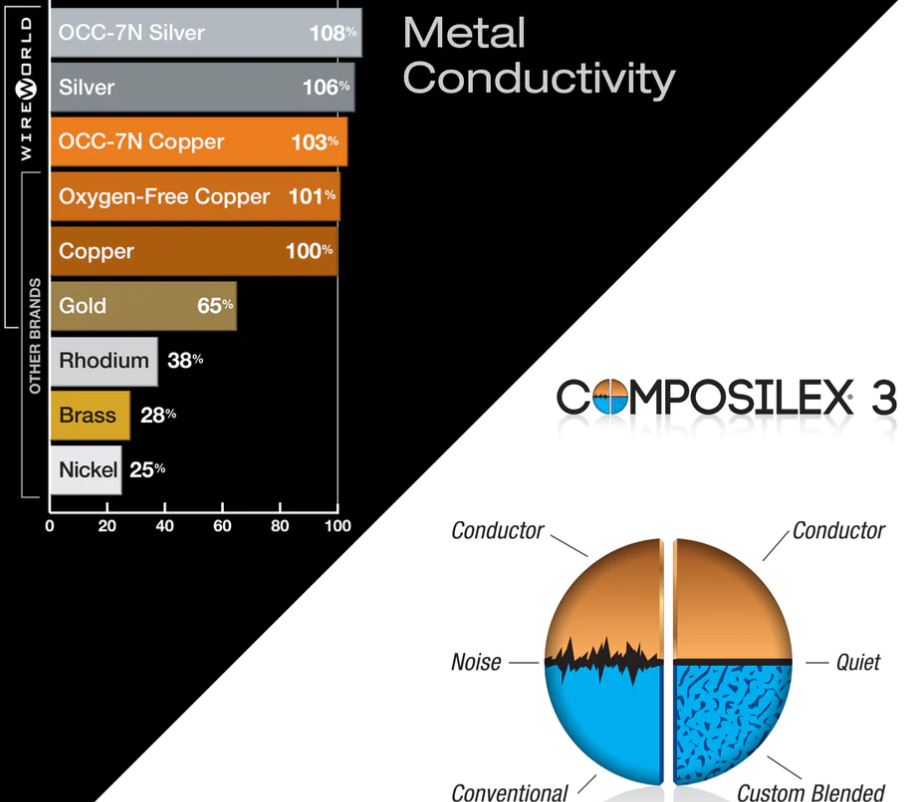 Oltre ai vantaggi dei migliori materiali conduttori, l’isolamento composito di terza generazione, COMPOSILEX 3, preserva la purezza del segnale riducendo al minimo il rumore triboelettrico meglio di qualsiasi materiale isolante convenzionale a bassa perdita, incluso DuPont Teflon®. COMPOSILEX 3 offre miglioramenti gratificanti in termini di vividezza, messa a fuoco e contrasto dinamico. Con queste innovazioni, i cavi di fascia alta Wireworld Serie 8 hanno fatto progredire l’arte di riprodurre la potenza e la delicatezza della musica.