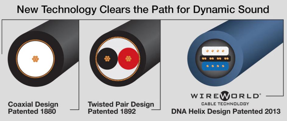 Dal 2013 Wirewold ha introdotto una nuova tecnologia brevettata denominata DNA* HELIX che consente di eliminare perdite e colorazioni normalmente causate dai cavi. I test mostrano che la perdita di qualità nei cablaggi è causata da effetti elettromagnetici. L’effetto chiamato resistenza alle correnti parassite, che aumenta quando i fili vengono attorcigliati, è particolarmente problematico perché maschera i dettagli musicali silenziosi. Per superare questi problemi, i filamenti nei progetti DNA HELIX sono completamente paralleli, fornendo il percorso del segnale più diretto per la più bassa resistenza alle correnti parassite.