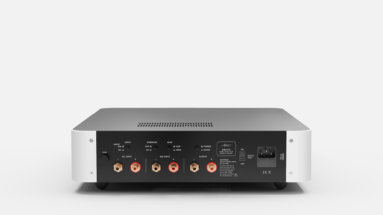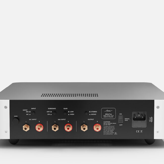Il Gratia è dotato di serie di piedini antivibrazione, adattati al peso del dispositivo. Logo retroilluminato. Lo stadio phono è progettato per funzionare con testine MM, MC HO e MC. La sezione di amplificazione si basa sull'amplificatore operazionale di alta gamma Burson Supreme Sound Opamp V5i. Il cuore del percorso di alimentazione esteso è il trasformatore Supreme Audio Toroidy.pl. Il vantaggio innegabile del Gratia è la sua universalità. Grazie all'ampia varietà di impostazioni, può essere abbinato perfettamente anche a testine MC a basso livello di uscita.Caratteristiche tecniche