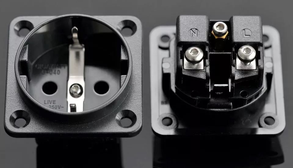 <p>Gli elementi rinforzati della carcassa sono realizzati in nylon nero. La presa è dotata di connettori a vite. I connettori in ottone sono stati rivestiti direttamente in argento, senza l'utilizzo di alcuno strato intermedio metallico; solitamente viene aggiunto uno strato di rame o nichel, ma ciò introdurrebbe una resistenza seriale dannosa e quindi abbasserebbe la tensione. Un rivestimento diretto in argento riduce al minimo la resistenza della connessione a livelli quasi non misurabili, prossimi allo zero assoluto, il che migliora le capacità sonore del prodotto. Una connessione robusta e stabile, una maggiore superficie di connessione e uno spesso strato di argento garantiscono un contatto perfetto con i pin della spina. Inoltre, la presa è stata smagnetizzata.