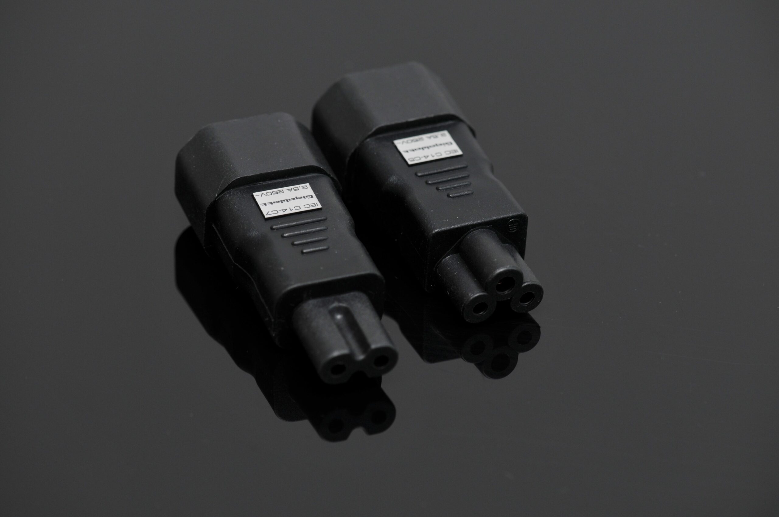 L'IEC320-C7 è un adattatore di alta qualità che può essere utilizzato per convertire i normali cavi di alimentazione C13. Il C7 viene spesso utilizzato su proiettori, dispositivi di streaming compatti, ecc. e sia il cavo che il connettore sono spesso di scarsa qualità. L'adattatore IEC320-C7 consente di collegare qualsiasi cavo con un normale connettore C13 montato su un cavo di alimentazione di qualità. L'utilizzo di questo adattatore consente al dispositivo collegato di funzionare in modo ottimale e offre miglioramenti sia audio che video. La guaina dell'adattatore è realizzata in PVC e nylon. Il tappo in ottone è trattato criogenicamente e smagnetizzato.