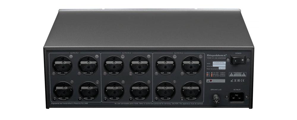 Il purificatore di corrente PowerControl è un'estensione delle caratteristiche funzionali del  PowerPrime. Anche questo modello utilizza soluzioni note dai purificatori di corrente della serie PC di fascia alta. Il dispositivo è dotato di 12 prese, il che lo rende paragonabile in termini di funzionalità al modello di punta PC-4 EVO+. La dotazione di serie include un voltmetro con interruttore e un DC Blocker. Come tutti i purificatori di potenza GigaWatt, PowerControl è disponibile con pannelli frontali sia in nero che in argento. Le caratteristiche principali: – Dodici prese di corrente proprietarie placcate in argento di alta qualità per garantire una resistenza di contatto pari a zero – Nuovo display voltmetro a LED con interruttore on/off. Bianco di serie, 9 colori personalizzati disponibili (costo aggiuntivo) – Profondità del cabinet compatta per ridurre i requisiti di spazio in applicazioni ristrette – Piedini antivibrazione in alluminio GigaWatt con cuscinetti morbidi per assorbire le vibrazioni – Copertura superiore smorzata con un tappetino composito in bitume-polimero – Indicatore di guasto a terra/polarità per evitare polarità errata o messa a terra difettosa – Architettura di filtraggio con condensatori di soppressione EMI GigaWatt Audio Grade personalizzati per prestazioni di filtraggio ottimali – Enormi binari di distribuzione delle prese di corrente, rame lucidato da 30 QMM (OFHC 10100, 99,995%) per una distribuzione stabile dell'alimentazione in topologia a stella – Cablaggio interno – OFC 4.0 QMM da GigaWatt Powerlink per la massima conduttività – Circuito stampato a doppio strato con rame argentato e tracce ultra larghe per ridurre la perdita di energia – Blocco filtro di tipo RLC con filtro a nucleo HF (High Flux) per la massima soppressione delle interferenze – Protezione da sovratensioni definitiva basata su spinterometro al plasma e varistori UltraMOV – Blocco offset CC per eliminare i componenti CC indesiderati nella rete elettrica – Contatto avanzato da Carling Technologies per una commutazione senza compromessi – Costruzione elettrica interna che consente carichi fino a 100 A di picco – Viti non magnetiche sui punti di flusso di corrente per evitare il degrado del campo elettrico – Sistema buffer migliorato con batteria di compensazione GigaWatt Audio Grade per un migliore fattore di potenza e la massima risposta all'impulso – Speciale design interno del fondo a sandwich per prevenire vibrazioni risonanti dal cabinet agli elementi filtranti – Ammortizzatori elastomerici interni per impedire il trasferimento di vibrazioni esterne agli elementi filtranti – Ingresso IEC C20 per un migliore contatto e flusso di corrente – Terminale di messa a terra per giradischi, cavi ecc. – Cavo di alimentazione PowerSync PLUS da 1,5 m di serie (altri cavi disponibili come optional) Con cavo LS-1 Evo Evo + 7.730 euro - con cavo PowerSync Ultra 6.850 euro - con cavo LC 2 Evo 6.380 euro - con cavo PowerSync Plus 6.230 euro