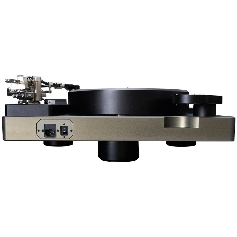 Il giradischi Magnezar spinge la tecnologia ai limiti con un progetto avente caratteristiche senza precedenti. Il piatto è interamente flottante su magneti permanenti, quindi non ci sono cuscinetti reggispinta meccanici. Contiene un motore a trazione diretta eccezionalmente silenzioso. Un liquido viene utilizzato per migliorare la stabilizzazione. Il Magnezar supporta il braccio tangenziale e il pod laser di Klaudio (venduti separatamente) ed è dotato di un supporto per un braccio secondario. Caratteristiche • Piatto a levitazione magnetica • Motore a trazione diretta ultra silenzioso • Stabilizzazione del liquido e illuminazione migliorate • Frenata elettronica • Supporto per un braccio tangenziale Klaudio e un pod laser più un braccio secondario • Velocità del piatto regolabile: 33, 45 e 78 giri/min • Costruzione in alluminio Dettagli aggiuntivi Motore e trasmissione diretti sviluppati da Klaudio Il giradischi Magnezar è dotato di un motore diretto brushless a 45 poli che garantisce un funzionamento silenzioso (0,02-0,05% Wow) e una velocità precisa (± 1/1000 giri/min). Il suo design orientato all'utente non richiede regolazioni o calibrazioni: un semplice clic avvia e arresta. Può arrestarsi entro 4 secondi grazie a un freno elettromagnetico. Il motore è perfettamente integrato sia nella base (statore) che nel piatto (rotore). Piatto pesante a levitazione magnetica Il design esclusivo di Klaudio presenta un piatto pesante da 13,2 kg (29 libbre) a levitazione magnetica al 100%, senza cuscinetto reggispinta, il primo al mondo a raggiungere tale levitazione con questo peso. Questa tecnologia sostituisce i tradizionali piedini ammortizzati con un singolo cuscinetto efficace che mantiene l'equilibrio assorbendo al contempo le vibrazioni. Piatto ad inerzia periferica Con un corpo pesante e ben bilanciato (peso totale: 42,2 kg), il giradischi Magnezar garantisce una riproduzione stabile. Il piatto ha un design cavo con il centro vuoto, concentrando il peso sul bordo. Ciò fornisce l'equivalente effetto inerziale di un piatto molto più pesante. Stabilizzatore liquido sul piatto Il liquido non solo conferisce un aspetto gradevole alla vista, ma assorbe anche gli squilibri del disco contribuendo a stabilizzare il piatto. Completo di braccio al prezzo di 60.000 € Vai al video.