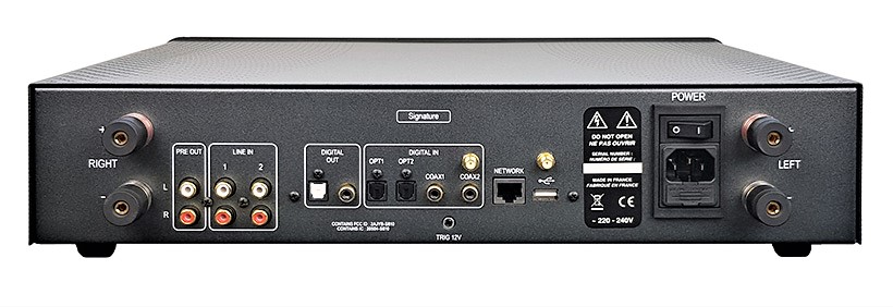 L’SDA200 Signature è arrivato, ben imballato e con un manuale facile da seguire e ben illustrato. Con un peso di 13 kg non è leggero, è il risultato di una concreta ingegneria francese che include un pannello frontale in alluminio da 10 mm dominato da un display a colori da 5 pollici con una grande manopola di controllo su entrambi i lati: la mano sinistra per la selezione del menu e la destra per il volume. Il pannello frontale ospita anche una presa per le cuffie e un ingresso USB.